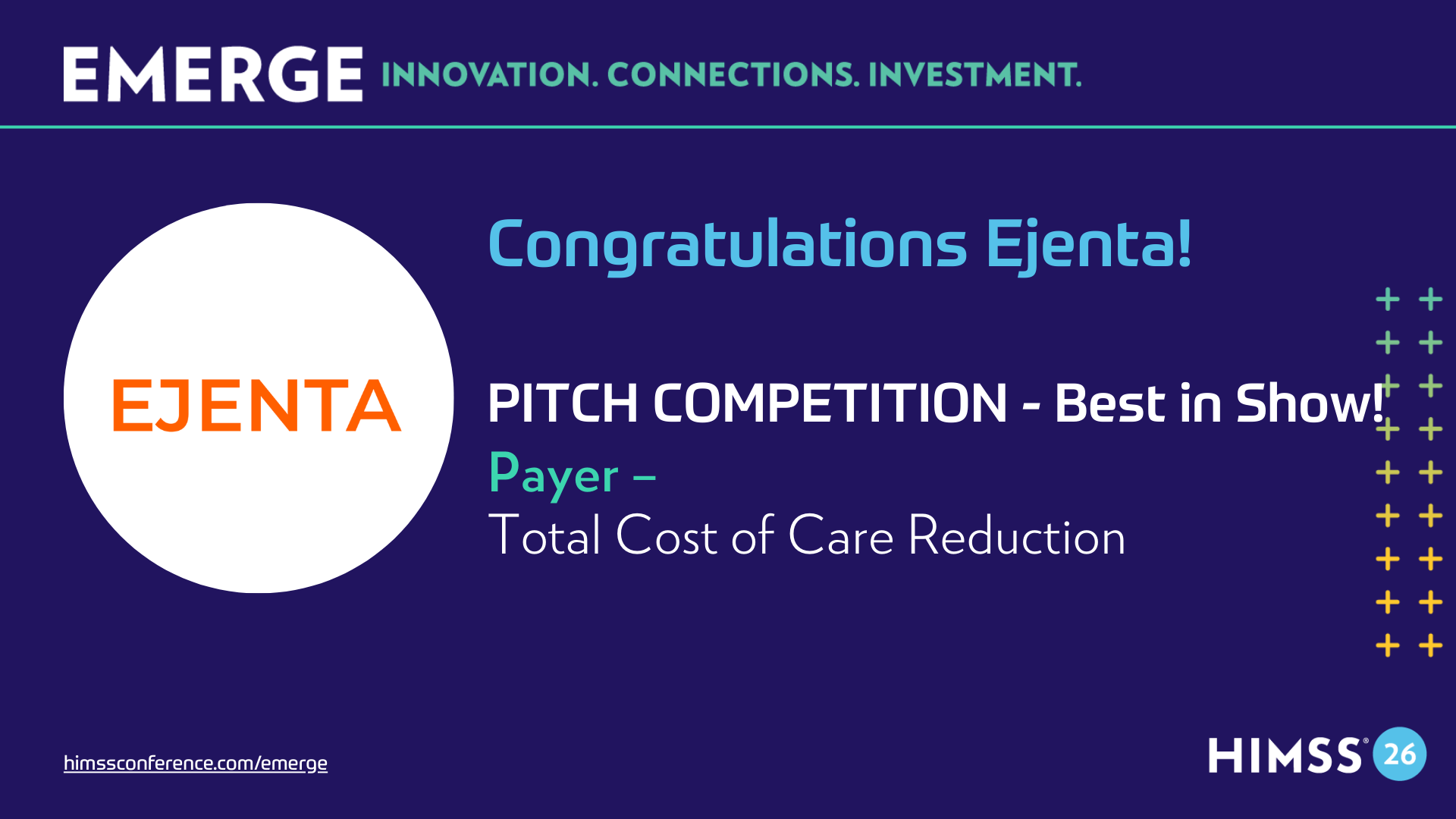 /Ejenta won Best in Show at HIMSS26 for Total Cost of Care Reduction for Payers! Join Ejenta at the Emerge Showcase on March 11, 2026 at 3:30 PM PT (Level 2 | Veronese 2501A). Our CEO Rachna Dhamija will present on how we use Agentic AI to reduce the total cost of care and improve patient outcomes.